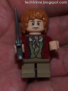 The Bilbo Baggins minifig has nicely detailed clothing imprinted on the torso and comes armed with Sting, An Elven Sword.